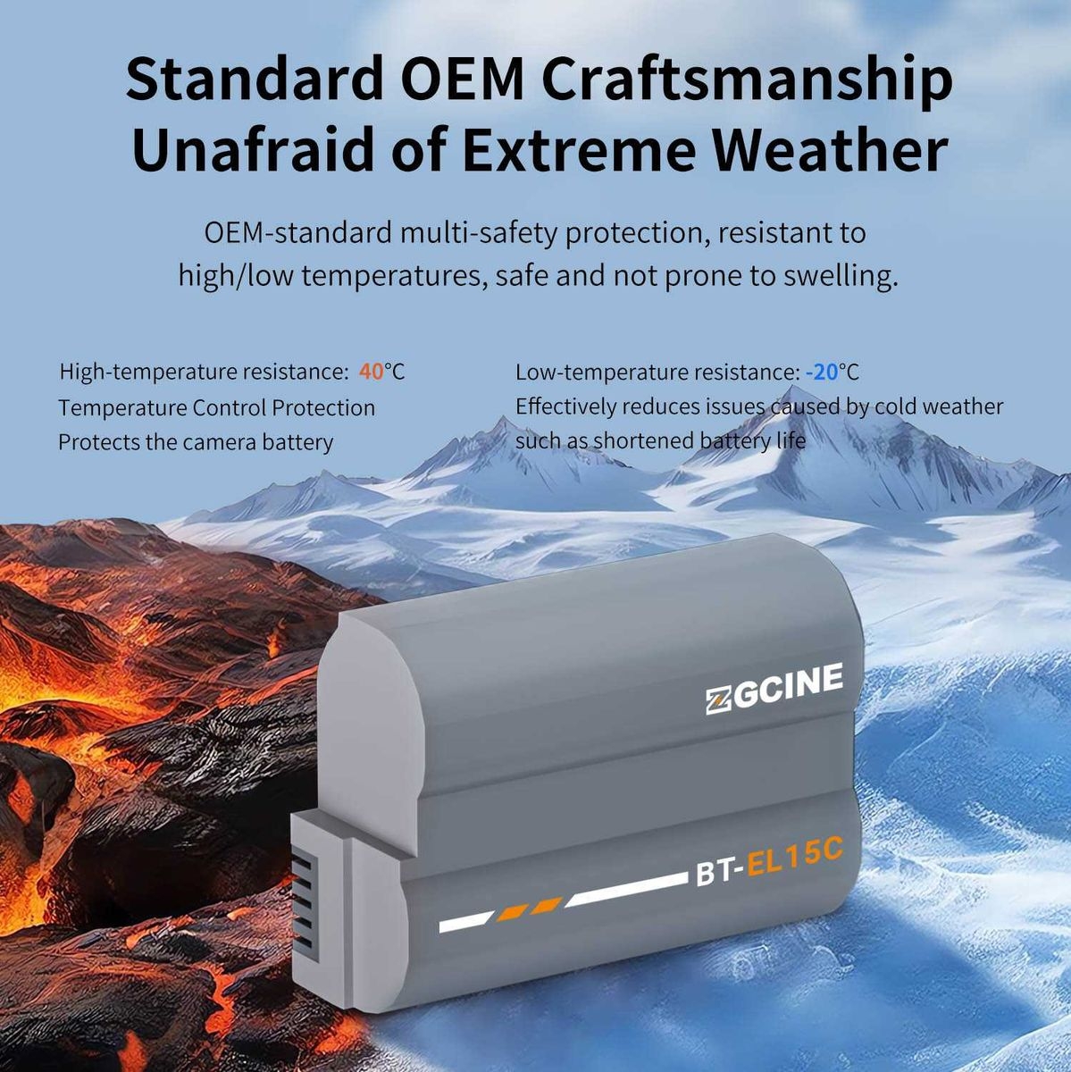 De ZGCINE BT-EL15C is ontworpen als directe vervanger voor de originele Nikon EN-EL15C accu. Met een capaciteit van 2400mAh en een uitgangsspanning van 7.2V levert deze batterij stabiele en consistente prestaties. Dankzij de veilige en betrouwbare interne circuitbescherming ben je verzekerd van een constante stroomvoorziening tijdens fotografie en video-opnames.
