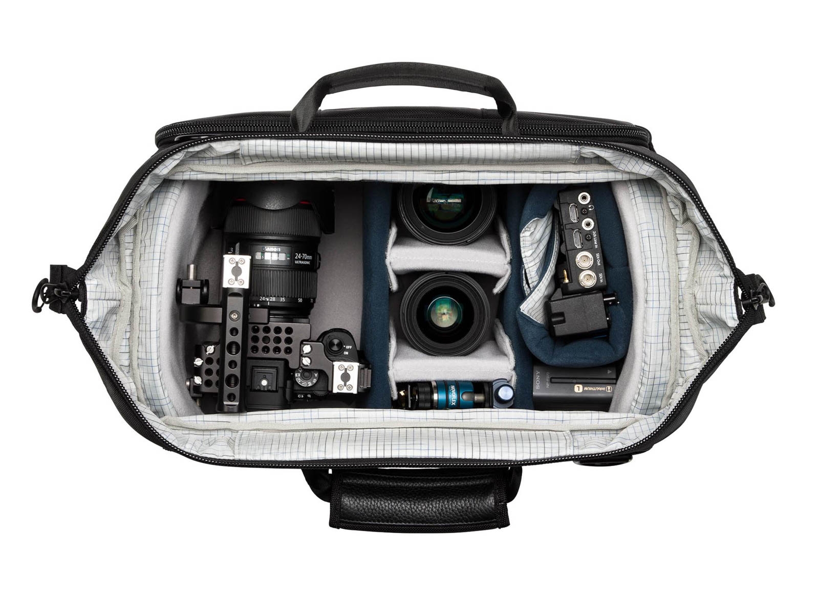 De tas is voorzien van zachte, verstelbare dividers waarmee je de indeling volledig naar wens aanpast. Kwetsbare onderdelen zoals lenzen, monitoren en audiorecorders blijven veilig opgeborgen dankzij de schokabsorberende constructie en stevige buitenmaterialen. De verstevigde bodem en duurzame ritsen zorgen ervoor dat de tas bestand is tegen intensief professioneel gebruik.