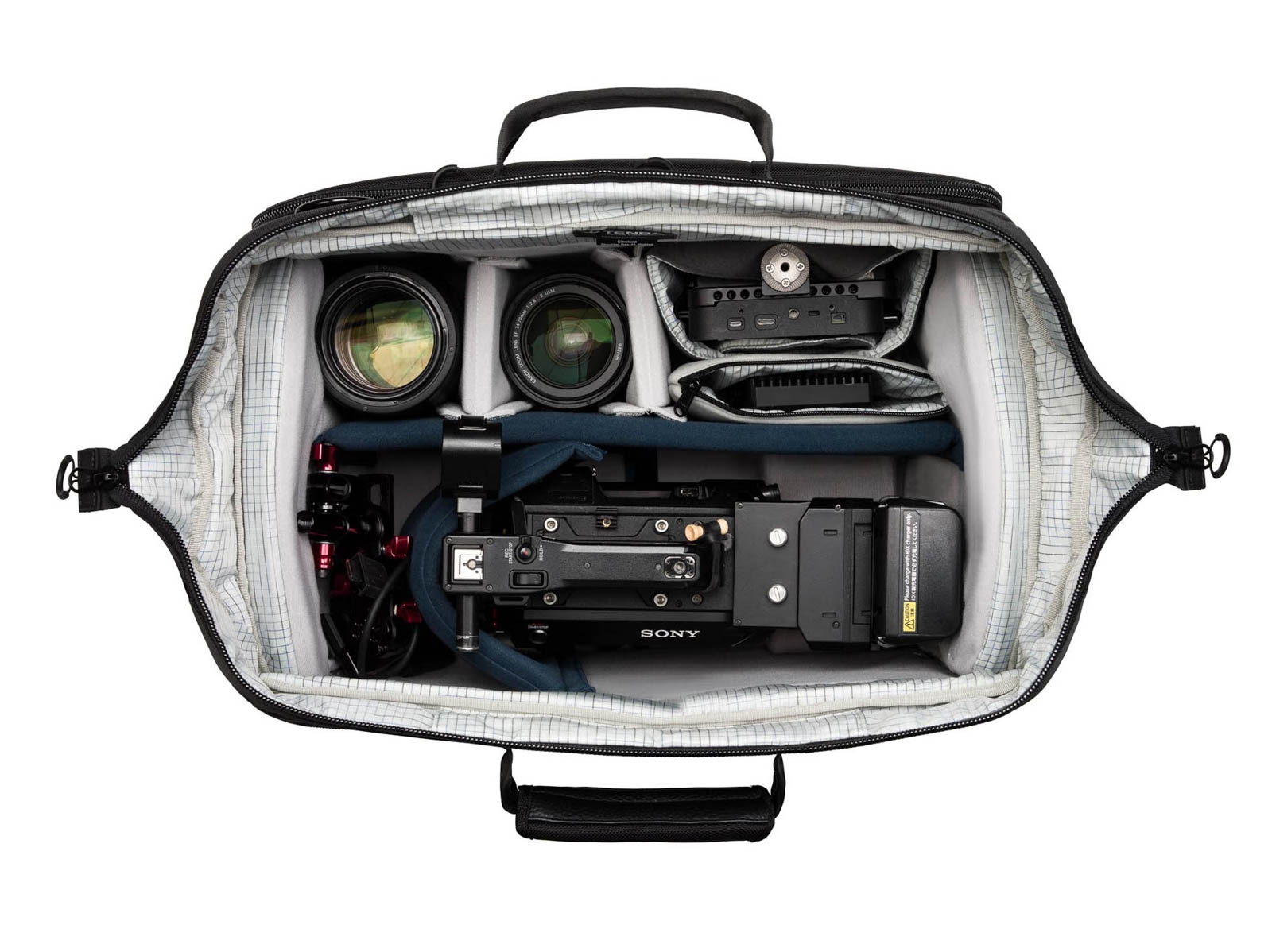 Het kenmerkende doctor bag-design zorgt ervoor dat de tas volledig openklapt. Hierdoor heb je in één oogopslag overzicht over je complete uitrusting. De stijve metalen frameconstructie houdt de opening wijd open tijdens gebruik, wat ideaal is bij snelle producties, interviews of reportages waarbij snelheid essentieel is.