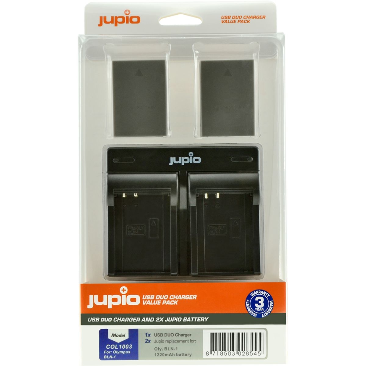 De Jupio Kit: 2x Battery PS-BLN1 + USB Dual Charger is een complete set voor bezitters van Olympus camera’s die gebruikmaken van de BLN-1 accu. Met twee betrouwbare Jupio accu’s en een compacte USB Dual Charger beschik je altijd over voldoende energie en kun je eenvoudig twee batterijen tegelijk opladen. Ideaal voor fotografen die vaak onderweg zijn of lange shoots draaien.