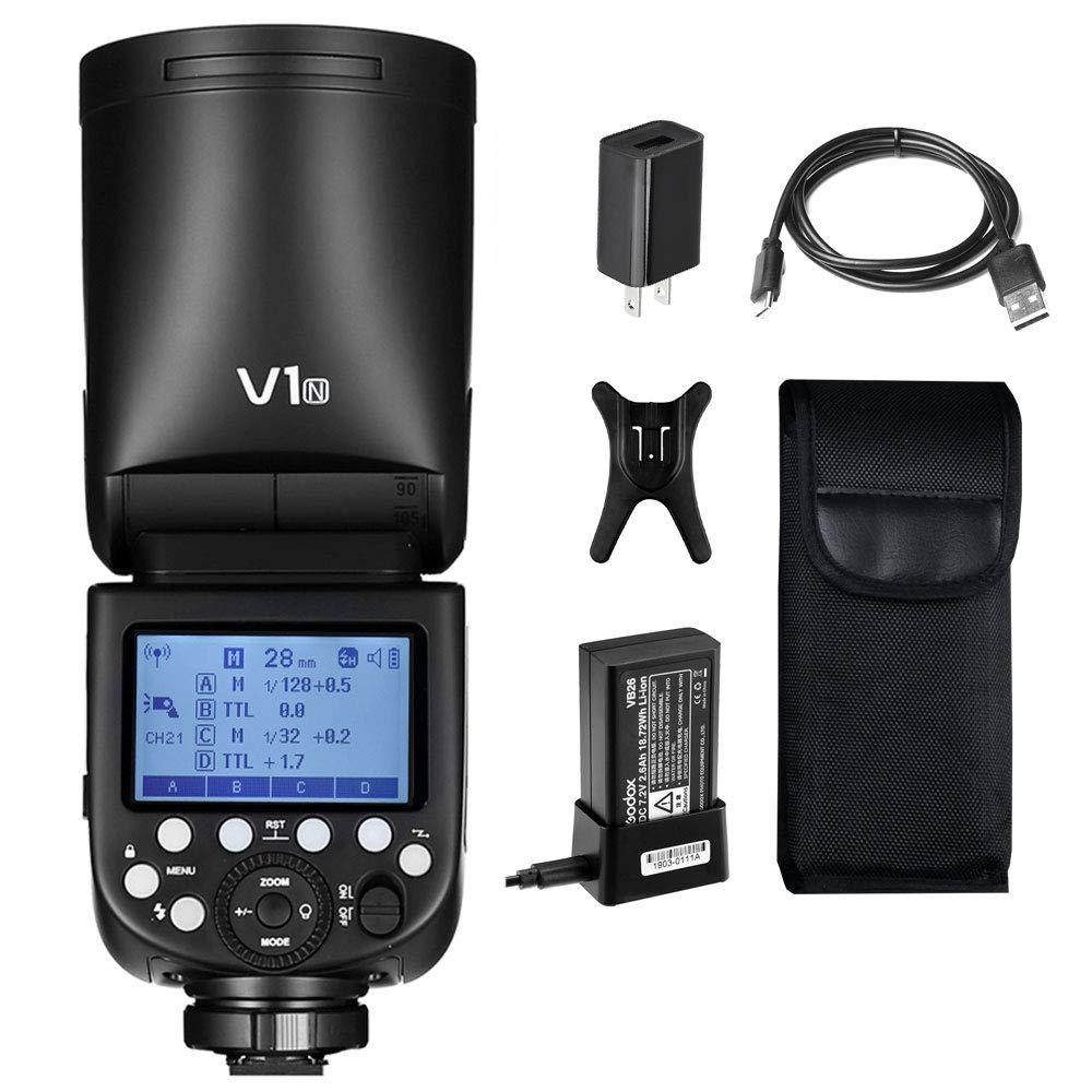Godox V1 Speedlite Kit voor Sony met ronde kop, lithium-ion accu, TTL, HSS en Wireless X-ondersteuning, ideaal voor professioneel en creatief flitsgebruik.