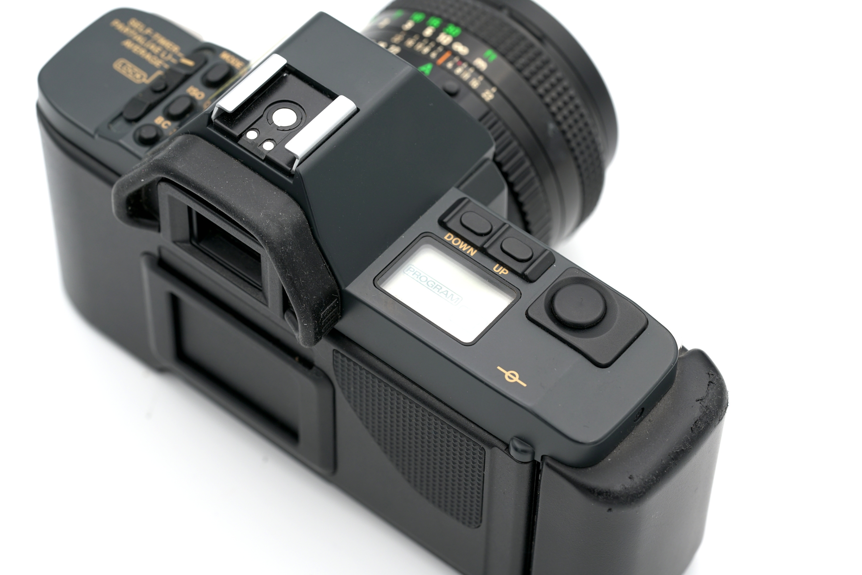 De Canon T70 behoort tot de bekende T-serie van Canon en combineert een strak, tijdloos ontwerp met geavanceerde elektronica voor zijn periode. De camera biedt meerdere automatische belichtingsprogramma’s, waaronder Program AE en sluitertijdvoorkeuze, waardoor hij zowel toegankelijk is voor beginners als interessant voor ervaren analoge fotografen. Het overzichtelijke LCD-scherm bovenop de camera zorgt voor snelle en duidelijke controle van de instellingen.