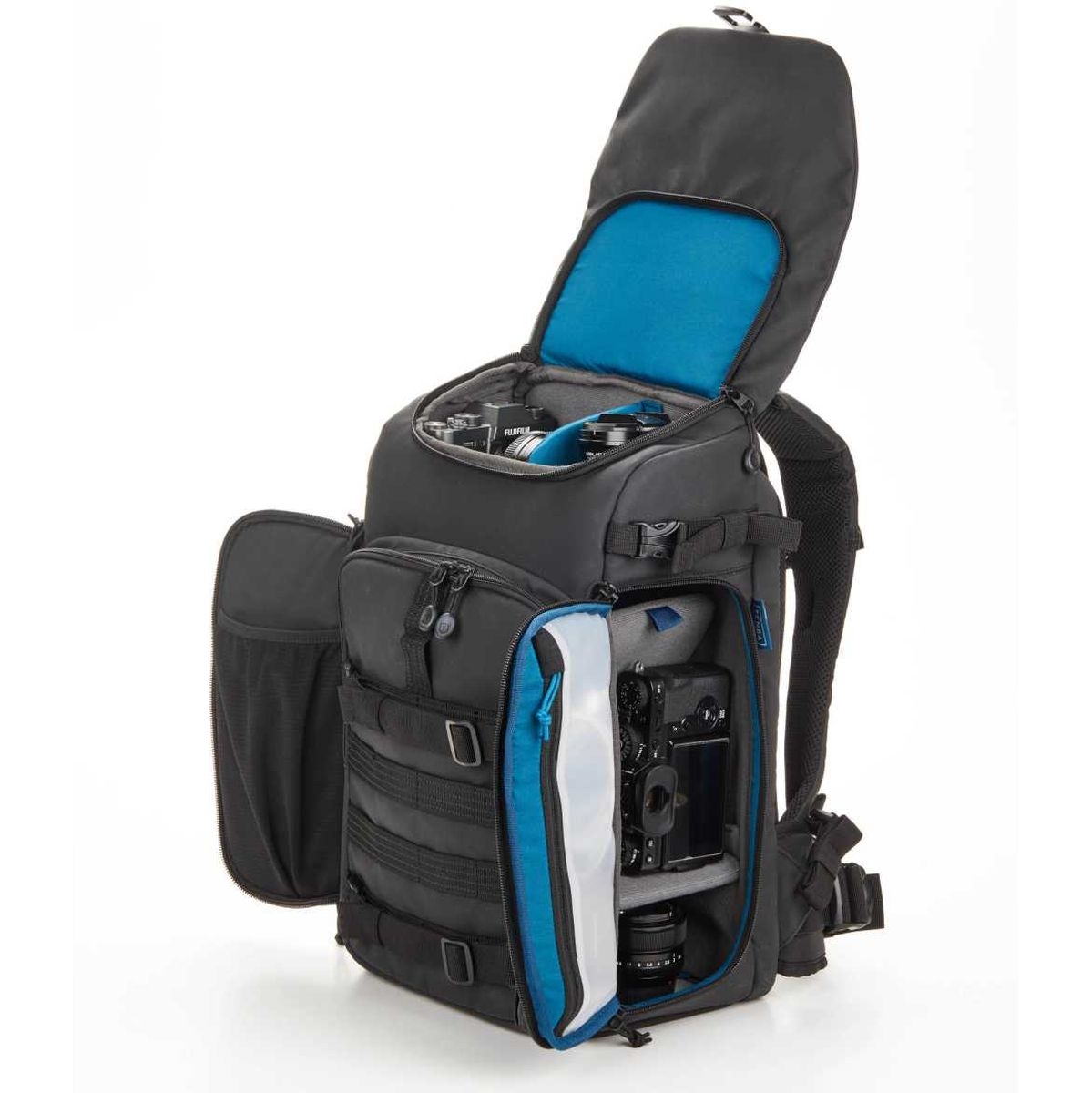 De ergonomisch gevormde schouderbanden en het ademende rugpaneel zorgen voor optimaal draagcomfort. De verstelbare borstband en bevestigingspunten voor accessoires maken de tas geschikt voor uiteenlopende toepassingen, van stedentrips tot outdoor shoots. Dankzij de compatibiliteit met MOLLE-accessoires breid je de tas eenvoudig uit met extra pouches of bevestigingen.