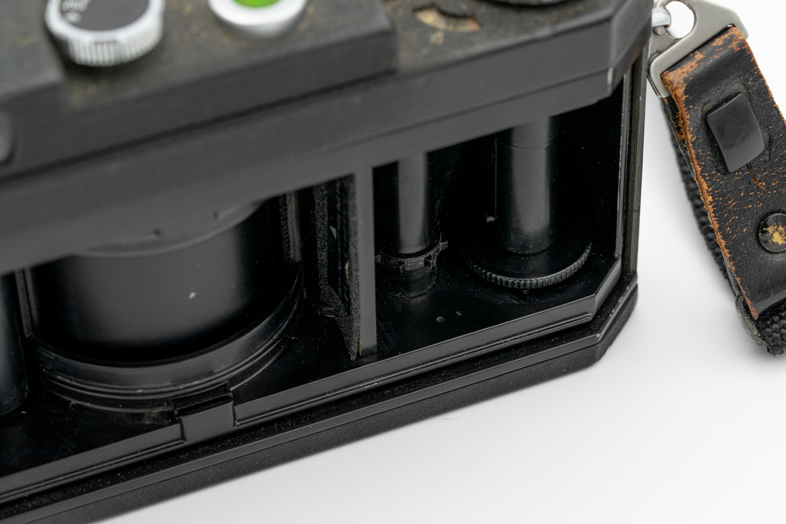 Let op: de frame teller werkt niet helemaal. Soms draait die niet goed mee naar volgende belichting. Dit heeft geen invloed op de werking van de camera zelf, maar je dient handmatig bij te houden hoeveel opnames er gemaakt zijn.